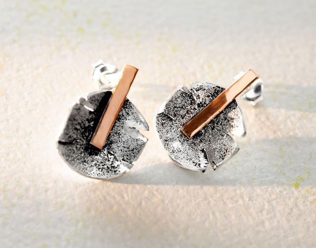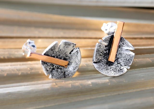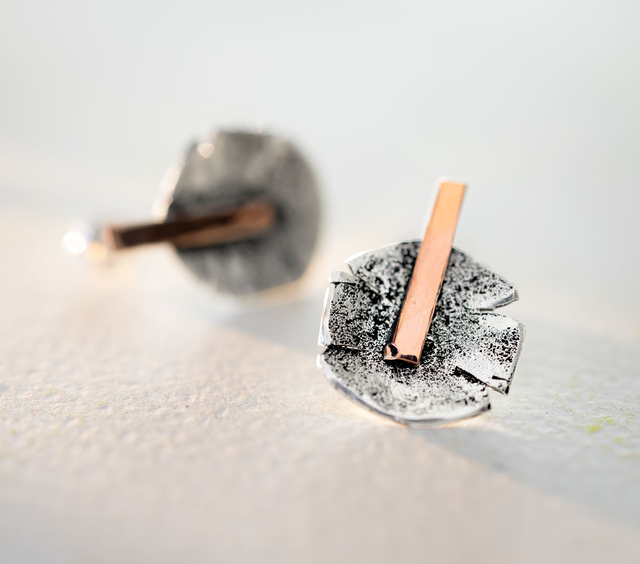Pendientes de plata 925 y detalle en cobre con diseño texturizado.